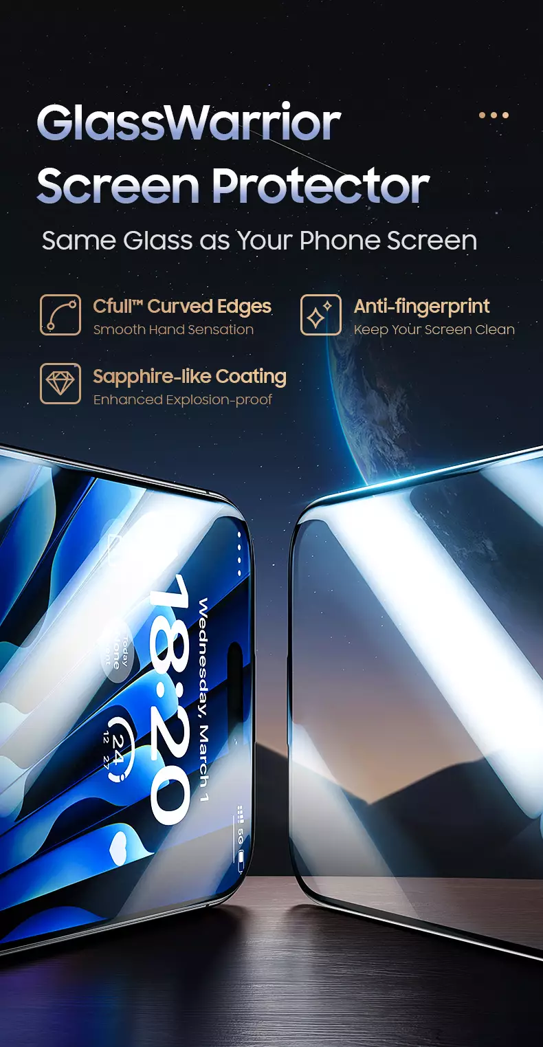 iPhone 15 Pro Max Tempered Glass Protector with Sapphire Coating GlassWarrior by Benks – 1 PACK – 6948005994105