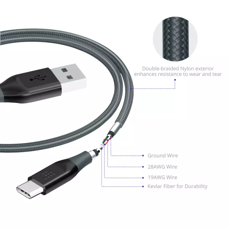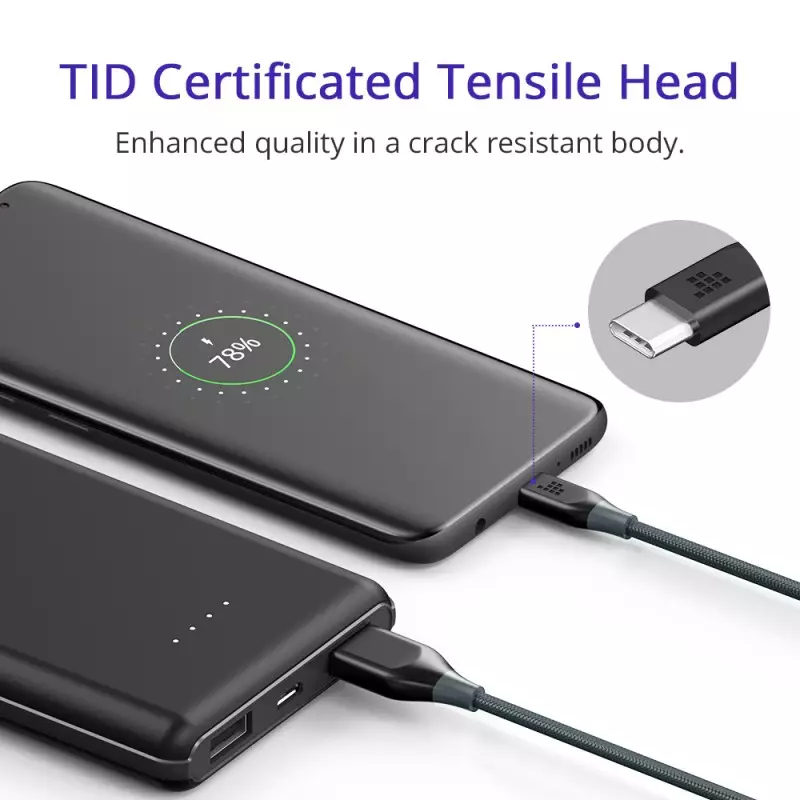 Tronsmart USB C to USB A Nylon Braided Cable – 3 Feet / 1 Meter – ATC6 – Black – BB