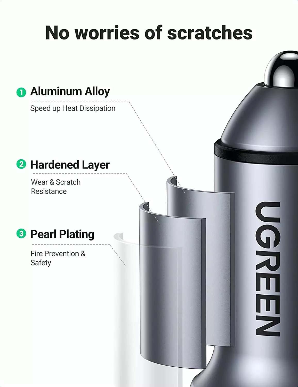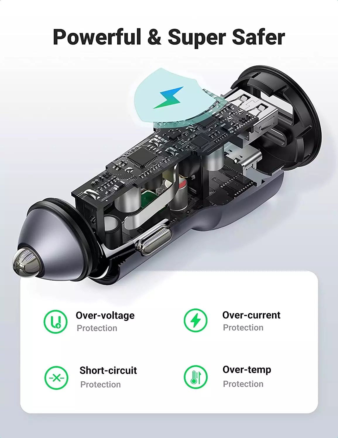 UGREEN 42.5W Dual Port Car Charger – 60980 – Black – BIS