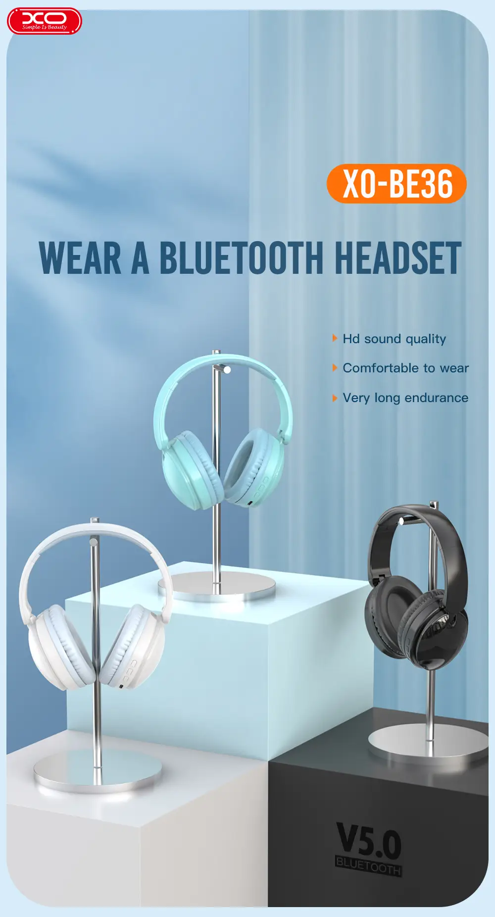 XO BE36 Portable Wireless Bluetooth Headphones – Black – GC
